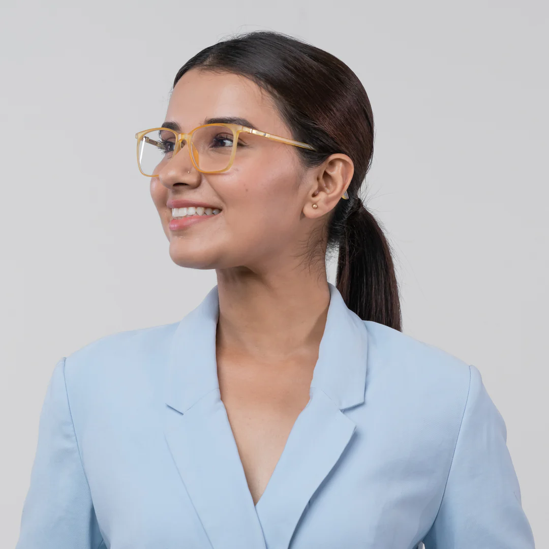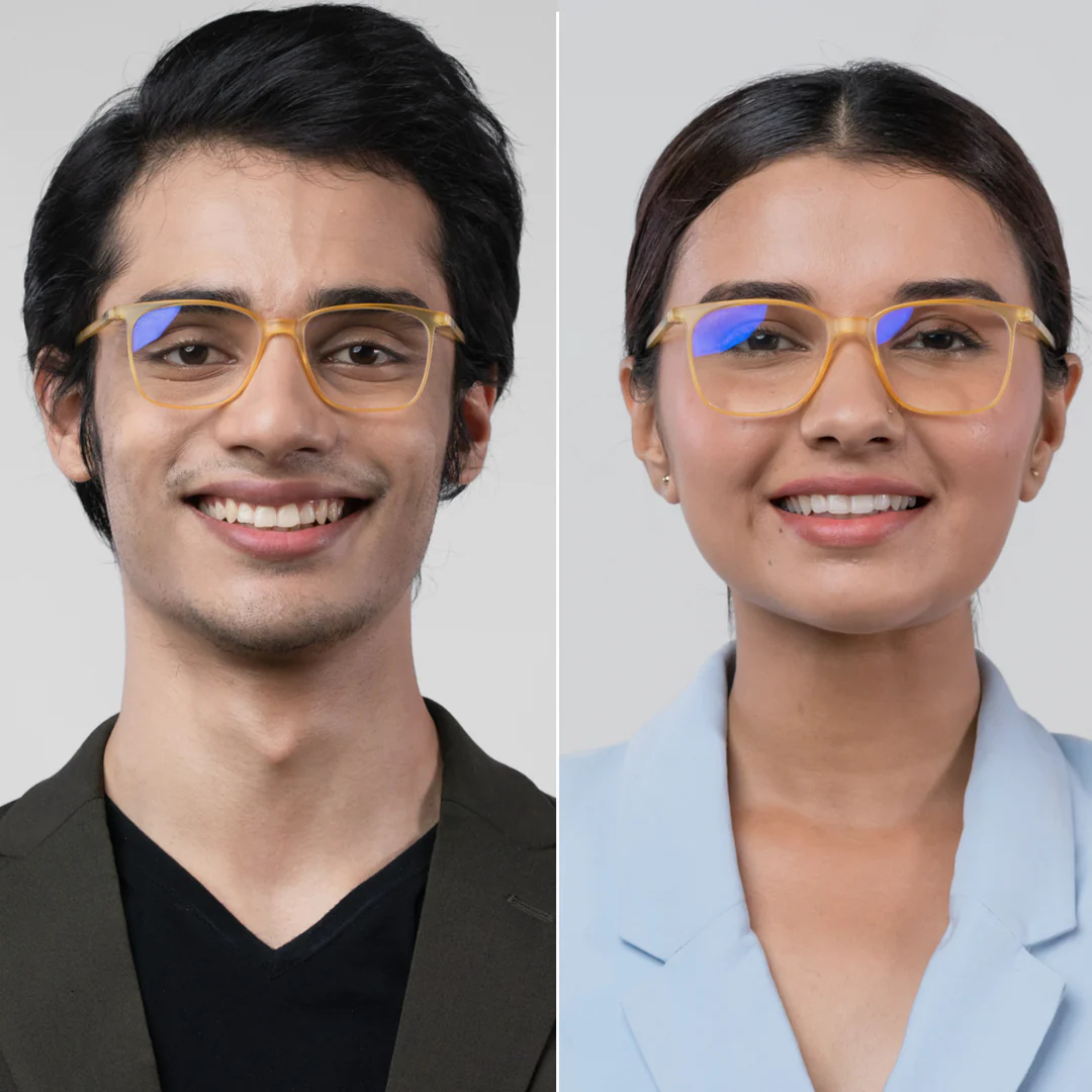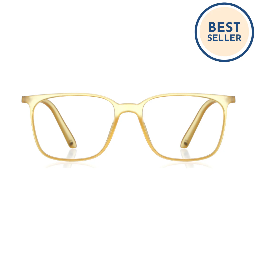 The Bluno Clark is a zero-power blue light cancelling glass, especially made for adults(unisex) that comes with ready fitted CR-39 zero power blue cut lenses (with green and yellow coating) which protect your eyes by blocking bad blue light and only allowing good blue light to enter the eyes.
