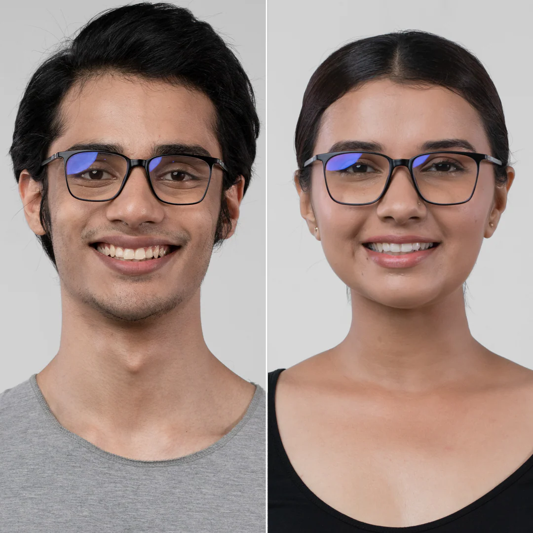 The Bluno Clark is a zero-power blue light cancelling glass, especially made for adults(unisex) that comes with ready fitted CR-39 zero power blue cut lenses (with green and yellow coating) which protect your eyes by blocking bad blue light and only allowing good blue light to enter the eyes.